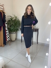 Tecido flanelado, com elástico da barra do croped e fenda atrás na saia