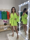 MACACO CURTO- COM ELÁSTICO NA CINTURA - COM BOJO - MANGAS COM RECORTES E FLARE - AMARRAÇÃO ATRÁS