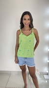 TECIDO EM LINHO BORDADO COM APLICAÇÕES EM FLOR AJUSTE NA ALÇA