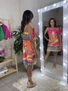VESTIDO CURTO- COM ALÇA REGULÁVEL- ESTAMPA TROPICAL - MIX DE CORES